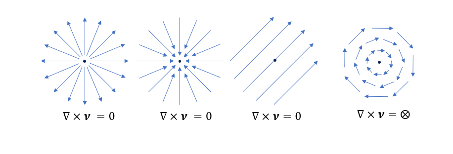 如下为空间中矢量场求解旋度后的结果示例,可以帮助理解旋度的运算。