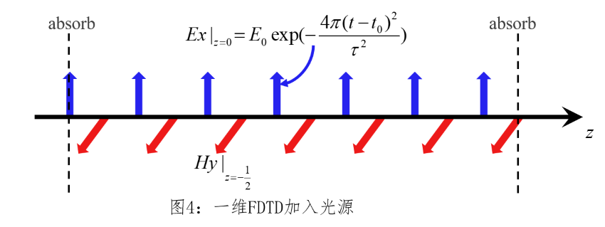 另一种加源方式根据麦克斯韦方程,将源的看作为电流或者磁流代入迭代方程。这种设置可以模拟具有特定辐射模式的光源,其辐射强度可以