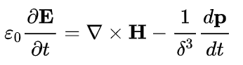 我们构建一个简单的电偶极子模型,此时两个符号相反的电荷 q 距离为 l,故电偶极距为 p=ql ,而电流密度与电偶极矩有如下关系: