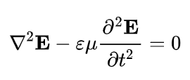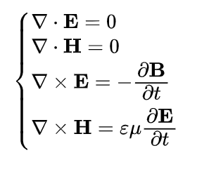在光源的传播过程当中,我们假定在一个无限大的各向同性均匀介质当中,没有自由电荷以及传导电流的存在(ρ=0 , j=0),此时可以简化麦克斯韦方程组的微分形式,得到以下结果