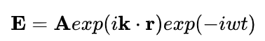 其中k为波矢量,其大小波数为k=2π/λ,w为角频率,大小为 w=2πf。可以看到其位相因子分为两部分,前者为空间因子exp(ik⋅r),后者为时间位相因子exp(−iwt)。此时平面简谐波传播时的时间位相因子都相同,故仅需要一个复振幅