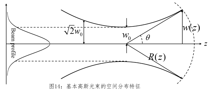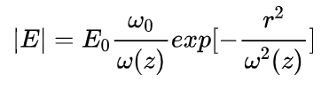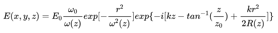 由此可知,高斯光源在z平面上,场振幅以高斯函数从中心向外平滑的减小,同时光斑半径随坐标z按双曲线的规律而扩展:
