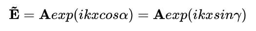 当选取一个二维考察平面(xoy 面),假定波矢量k与xz平面平行,并按如上左图所示入射,上式在考察平面上的振幅分布为