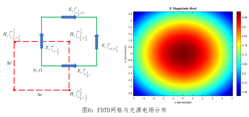 在电偶极子所在区域将激励源加入到上式电场节点当中即可实现电偶极子光源的引入。磁偶极子同理加入到对应的磁场节点当中即可。
