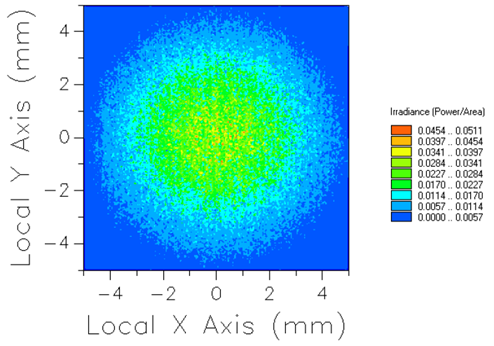 ![]() 当光源“fullaperture”可追迹时,其照射轮廓是5mm半宽度的高斯形,如下所示。