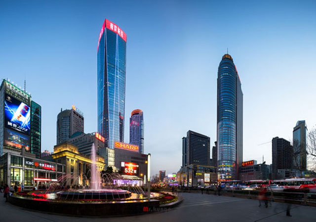 xinjiekou, the city's equivalent to times square, is a perfect spot to feel the glitz and glamour of modern nanjing when the night falls. the blinding intersection is surrounded by luxury brand stores, gigantic shopping malls and towering five-star hotels. underneath, there is another labyrinth of subway stalls stretching for miles, selling the hottest eats and knick-knacks. one of the best places to dine in xinjiekou is the plum garden restaurant in jinling hotel. the elegant space serves the city's best salted duck.
