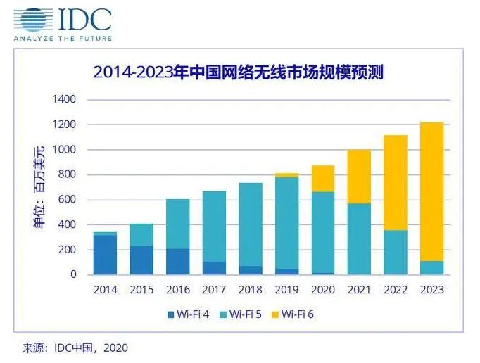 在idc《中国wlan市场季度跟踪报告,2019年第wi-fi三季度》报告中,wi-fi 6首次登录中国网络无线市场便取得了470万美元销量的不错成绩。从其规模预测来看,2022年wi-fi 6就将取代wi-fi 5占据中国网络无线市场份额的一半以上。由wi-fi 5终将从其主导的wlan市场功成身退,迎来wi-fi 6的主场时代。