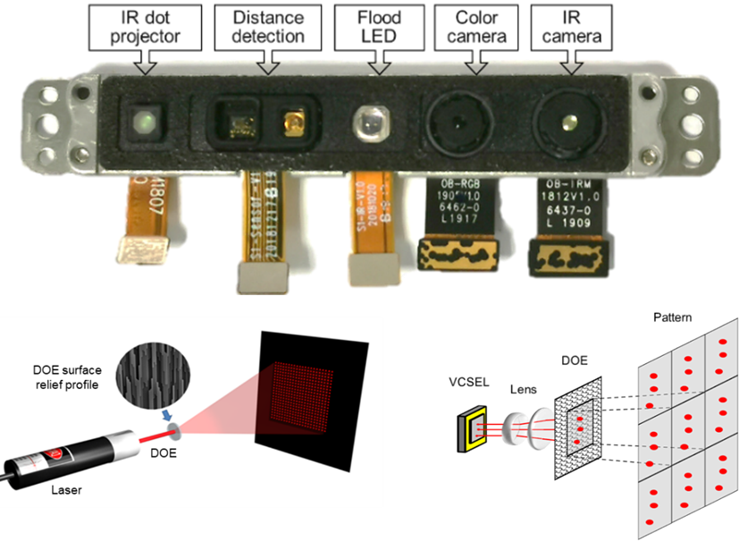 图8 基于vcsel的结构光三维传感器的硬件组成及其微型结构光投射器的基本原理