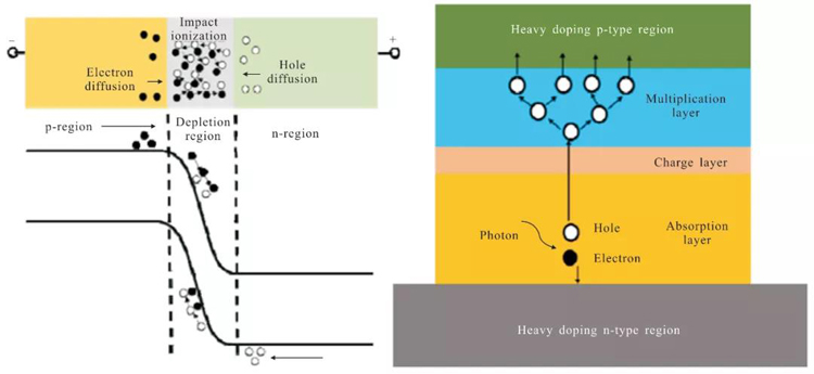 图1 雪崩探测器原理和层结构
