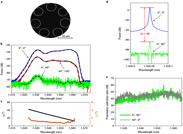 来自英国南安普顿大学光电研究中心的a. taranta等人发现,经过特殊设计的反谐振空芯光纤可以将两个正交偏振模以10-10/m量级的耦合强度进行传输,实现一个类似于自由空间传输的波导结构。相关研究成果以题目“exceptional polarization purity in antiresonant hollow-core optical fibres”于2020年5月11发表在nature photonics上。
