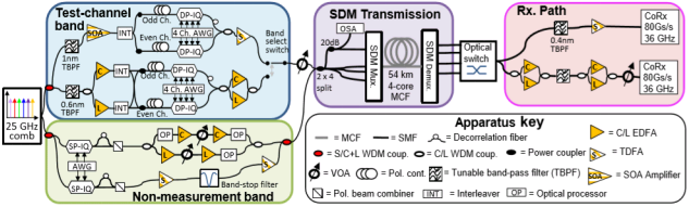 图1 4芯强耦合光纤s,c l波段传输实验
