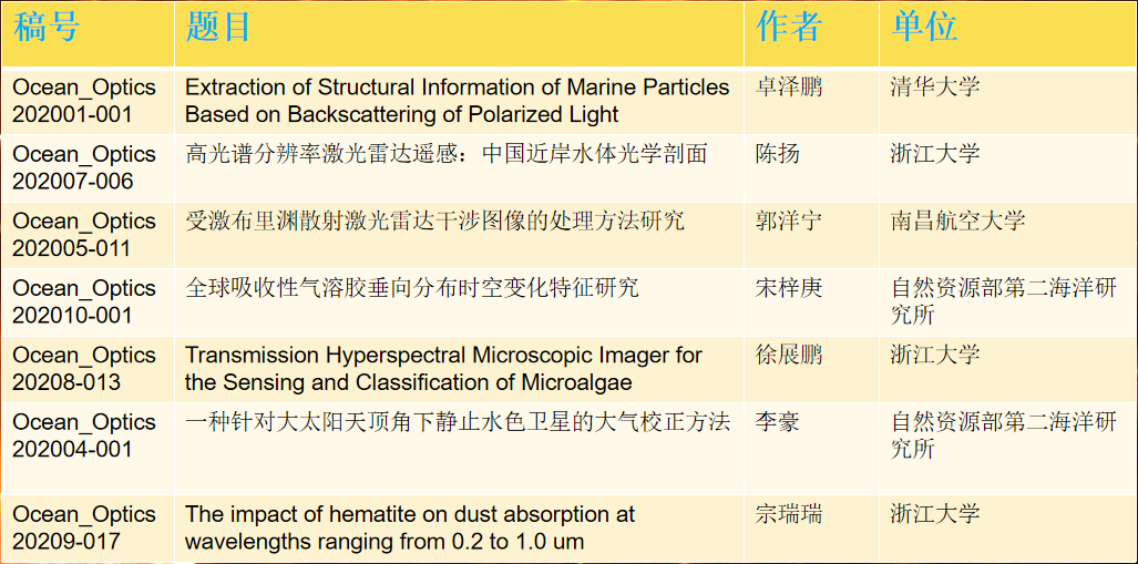 附:第四届全国海洋光学高峰论坛优秀论文名单