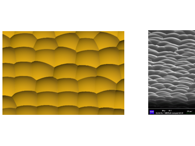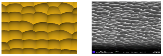 左图:基于virtuallab fusion构建的非周期微透镜阵列 右图:加工所获得的工程匀光片