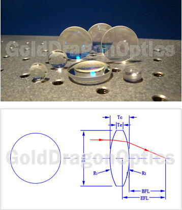 | 编号(no.) | 焦距(efl) | 直径(dia) | r1=r2 | 中心厚(tc) | 边厚(te) | 后焦距(bfl) |