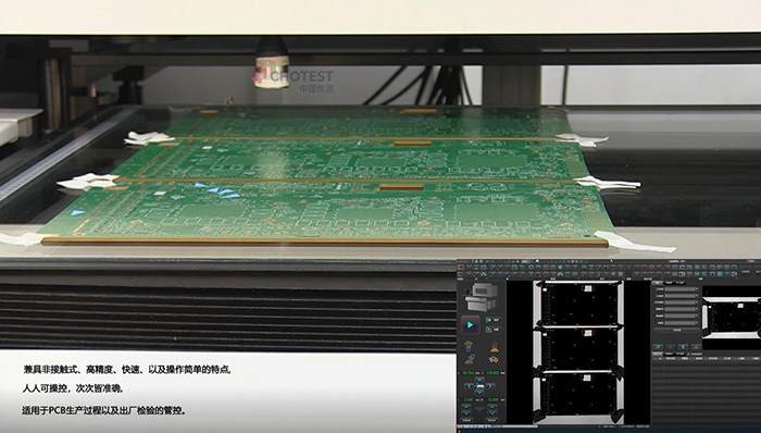 vx9700光学扫描成像测量机是以光学成像测量系统为基础的光学三维测试测量设备,配合高精度运动机构和花岗岩龙门式底座,实现了测量精度、速度、稳定的结合。其非接触式传感器,结合高精度分析算法,可以精准计算测量位的平面度和翘曲度数据,且即使在多块pcb板同时测量的情况下,也稳定进行。在测量范围内,自动定位测量对象、进行测量评价、生产数据报表,无论是抽检或批量检测均适用,一定程度上满足了pcb制造企业对于产品测量以及质量提升的要求。兼具非接触式、高精度、快速、以及操作简单的特点,人人可操控,次次皆准确,适用于pcb生产过程以及出厂检验的管控。