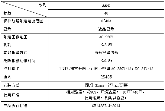 技术要求:故障电弧报警,ac 40a以下的负载