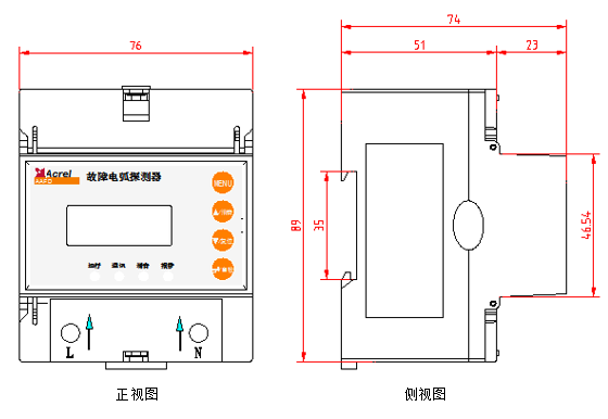 故障电弧探测器(以下简称探测器)对接入线路中的故障电弧(包括故障并联电弧、故障串联电弧)进行有效的检测,当检测到线路中存在引起火灾的故障电弧时,可以进行现场的声光报警,并将报警信息传输给上端监控设备,以实现预警火灾发生的目的。