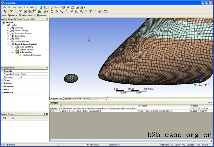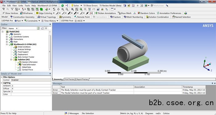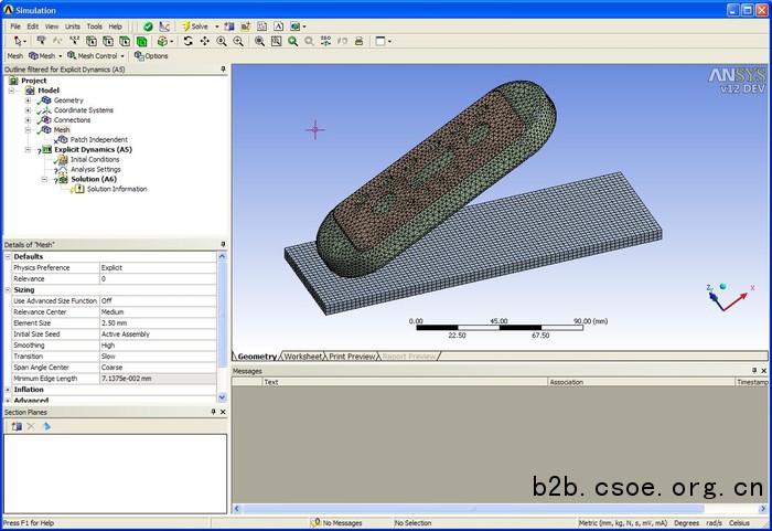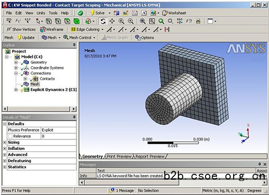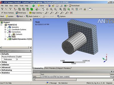 在经典的ansys使用环境中,可以采用传统的ansys参数化设计语言(apdl)来进行复杂的显式动力学问题的求解。随着技术的发展,强大而全面的ansys workbench环境具有双向的cad接口功能、几何清理工具、自动网格划分功能。网格划分工具的扩展及大地提高了ansys ls-dyna分析中涉及的初始条件和边界条件的定义效率。