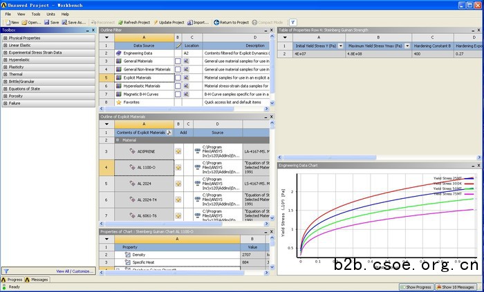 材料模型用来模拟结构材料的动态载荷下的响应。ansys ls-dyna有丰富的材料模型计算能力,涵盖几乎所有类型的显式动态模拟所需的材料响应类型。这些模型包括正交各向异性材料、热弹塑性材料、弹塑性断裂材料、应变率相关材料、正交异性压碎材料、复合损伤材料、温度和率相关材料等。