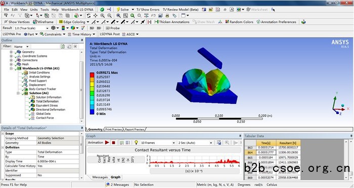 ansys ls-dyna在workbench环境直接进行计算结果的后处理,包括制作动画、显示曲线等。