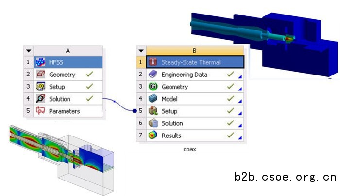 顺序耦合技术允许工程师们通过将多个单一物理场的模型耦合到统一的仿真环境中,用ansys workbench中的自动多物理场耦合技术求解多物理场问题。该平台对于诸如热-应力分析、微波加热和流固耦合等多物理场问题,支持单向和双向顺序求解。