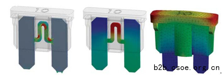 汽车刀片保险丝耦合电传导、热传递和热应力分析的多物理场分析