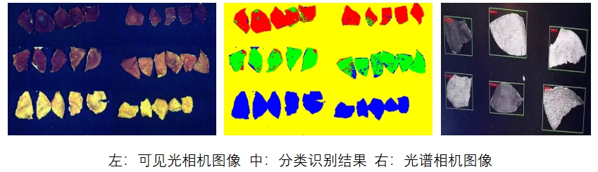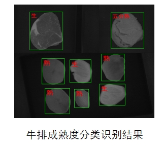 下图为使用光谱相机进行牛排成熟度检测实验,牛排烤制过程中,常人难以对牛排成熟度进行识别,不同成熟度的牛排口感不同,利用光谱相机能够实现对牛排成熟度分类识别,图中牛排为生、五分熟和全熟: