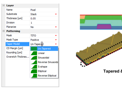 techwiz lcd 3d支持un-tapered, linear, sinusoidal, reverse sinusoidal, s-shape, elliptical, reverse elliptical的结构taper设定